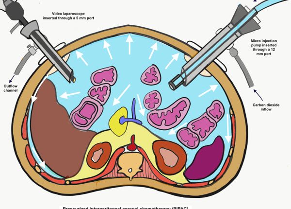 HIPEC (Hyperthermic Intraperitoneal Chemotherapy) is relatively well-known now. This surgery entails removal of all abdominal tumour (Complete cytoreductive surgery) followed by the circulation of heated chemotherapy within the abdominal cavity to directly kill microscopic tumour cells.
